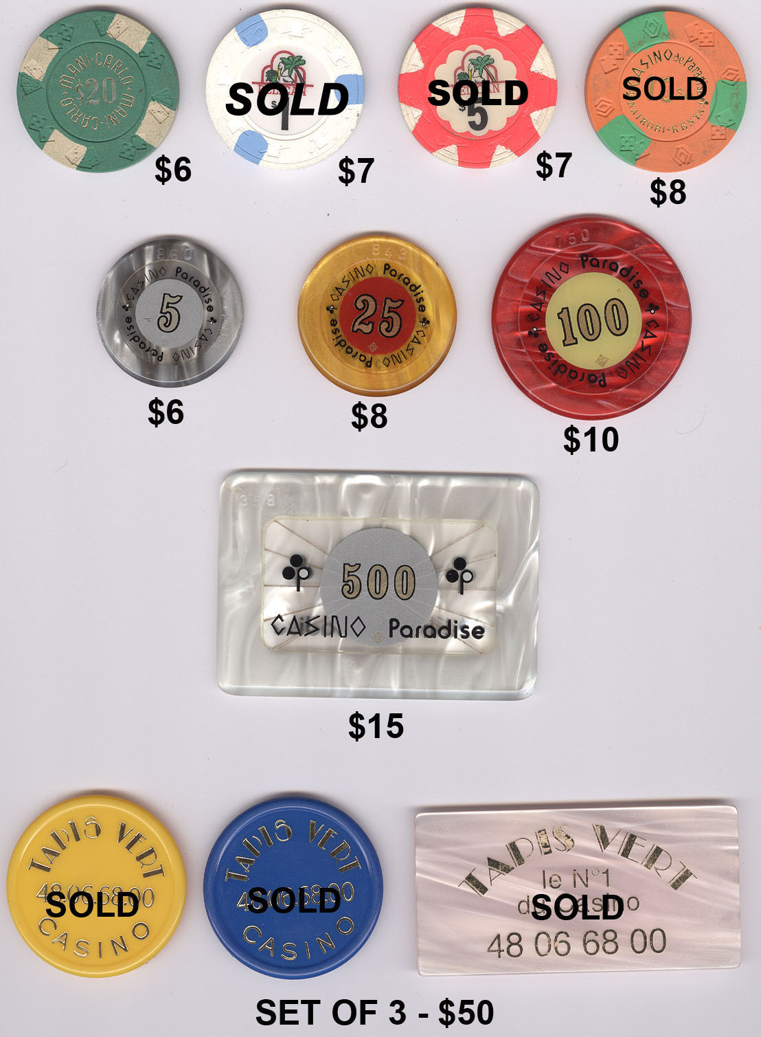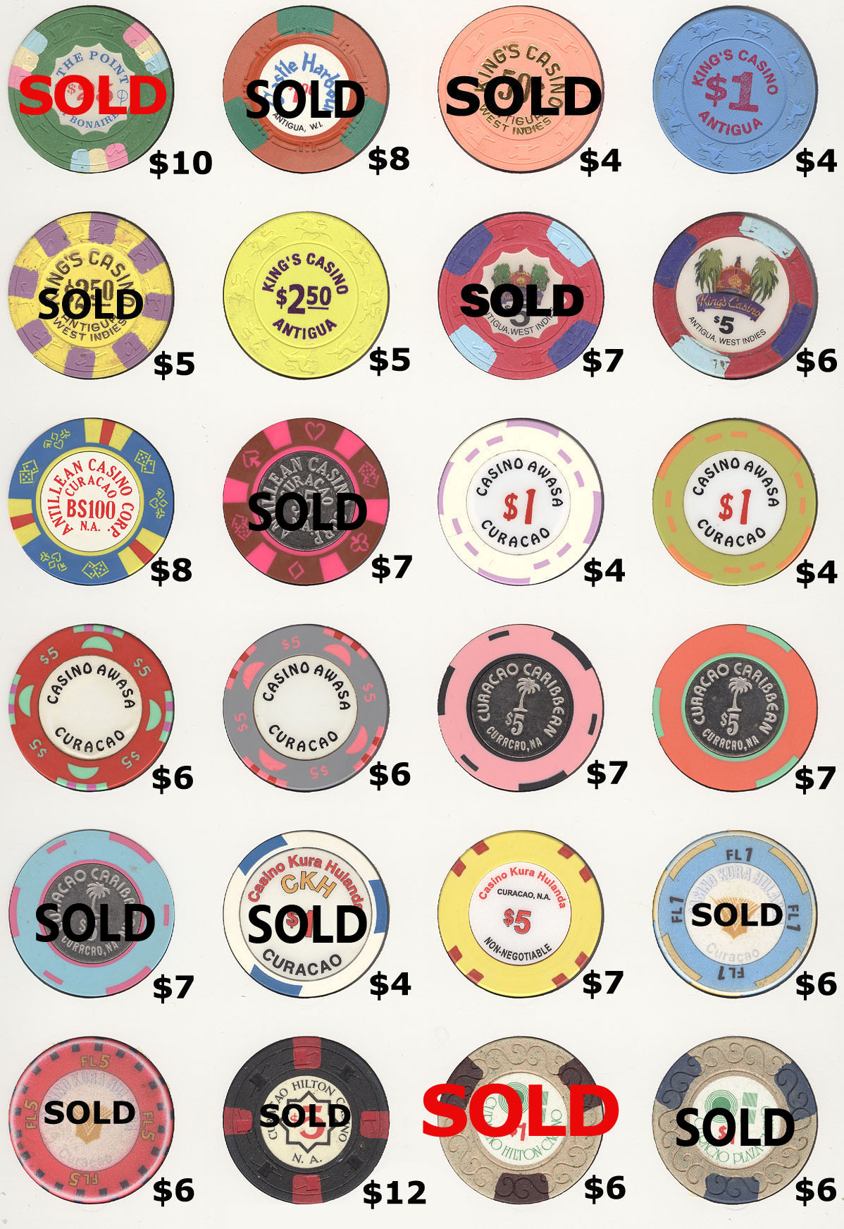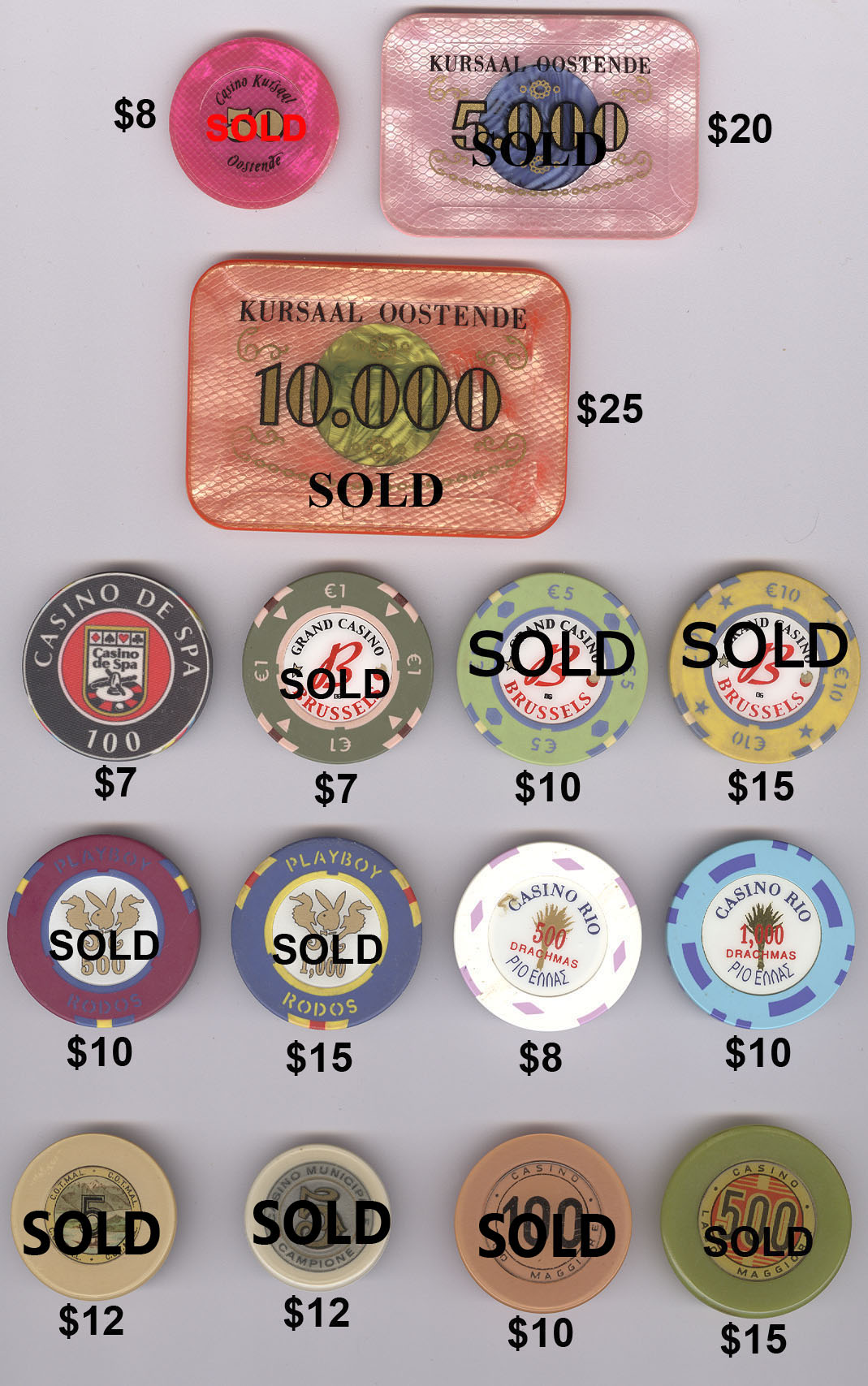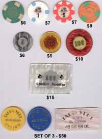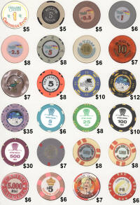 The Mike Richter Collection - FOREIGN The chips shown on the pages below are available for immediate shipping. There is a minimum order value of $25 (unless you are happy to pay actual international shipping costs on top). For orders from $25 but under $50, a flat rate $10 shipping will be added. Orders $50 - $100 will have $5 flat rate shipping. Orders $100 and over will ship free. Email me to order anything. Click on thumbnails to view fullsize images.  |