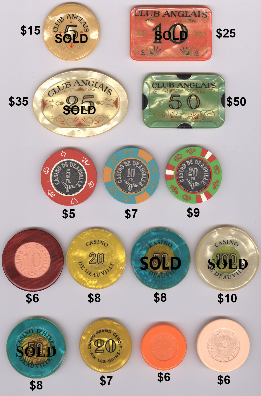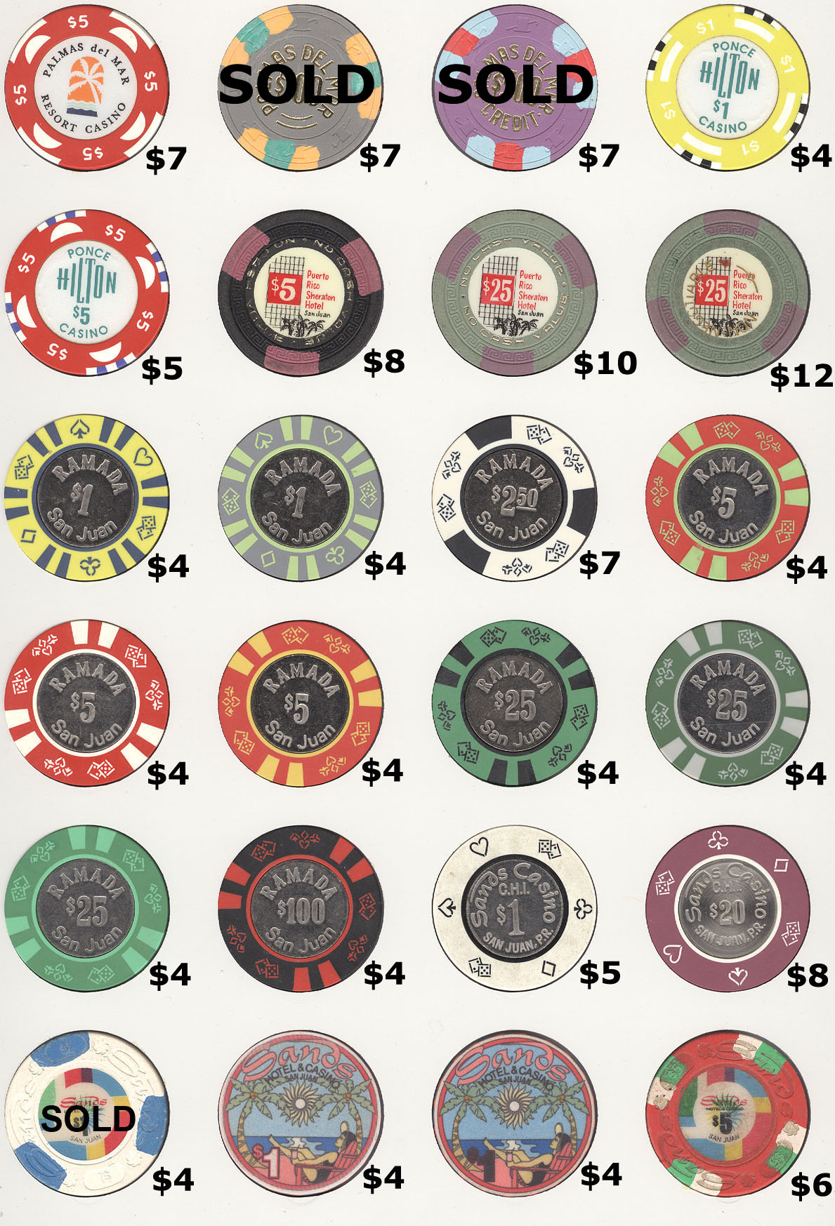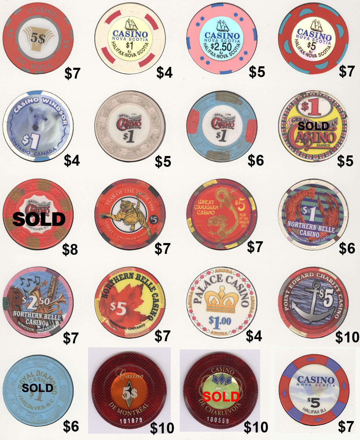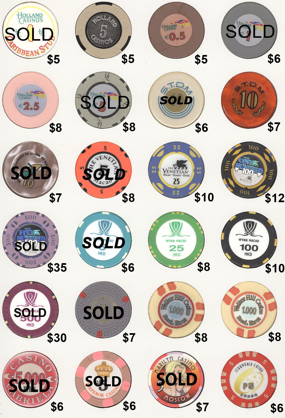 The Mike Richter Collection - FOREIGN The chips shown on the pages below are available for immediate shipping. There is a minimum order value of $25 (unless you are happy to pay actual international shipping costs on top). For orders from $25 but under $50, a flat rate $10 shipping will be added. Orders $50 - $100 will have $5 flat rate shipping. Orders $100 and over will ship free. Email me to order anything. Click on thumbnails to view fullsize images.  |